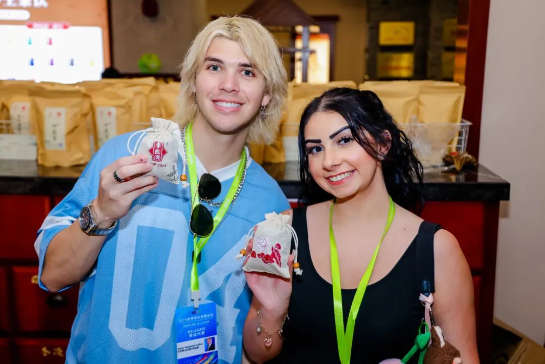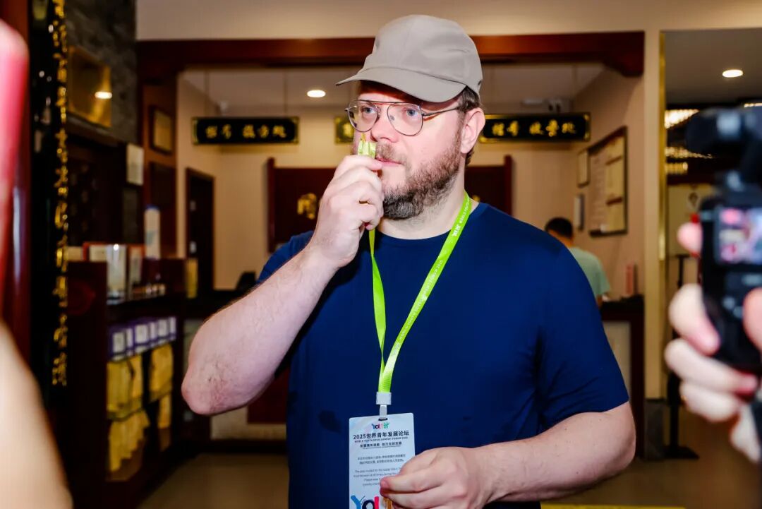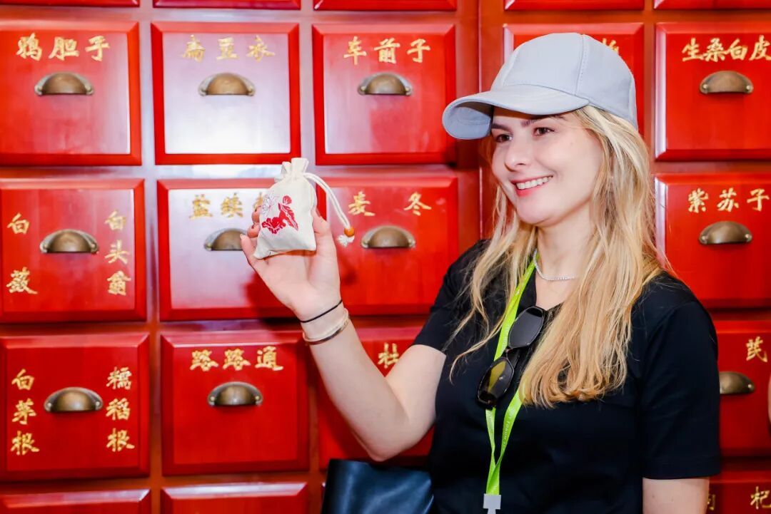 移步至國(guó)醫(yī)館,品種多樣的現(xiàn)代養(yǎng)生茶飲與膏方產(chǎn)品吸引了大家的目光。外國(guó)青年代表們興致盎然地拿起便攜條狀膏方,拆開(kāi)細(xì)細(xì)品嘗,通過(guò)味覺(jué)的親身體驗(yàn),直觀領(lǐng)略了傳統(tǒng)中醫(yī)藥在日常保健中的實(shí)用智慧。